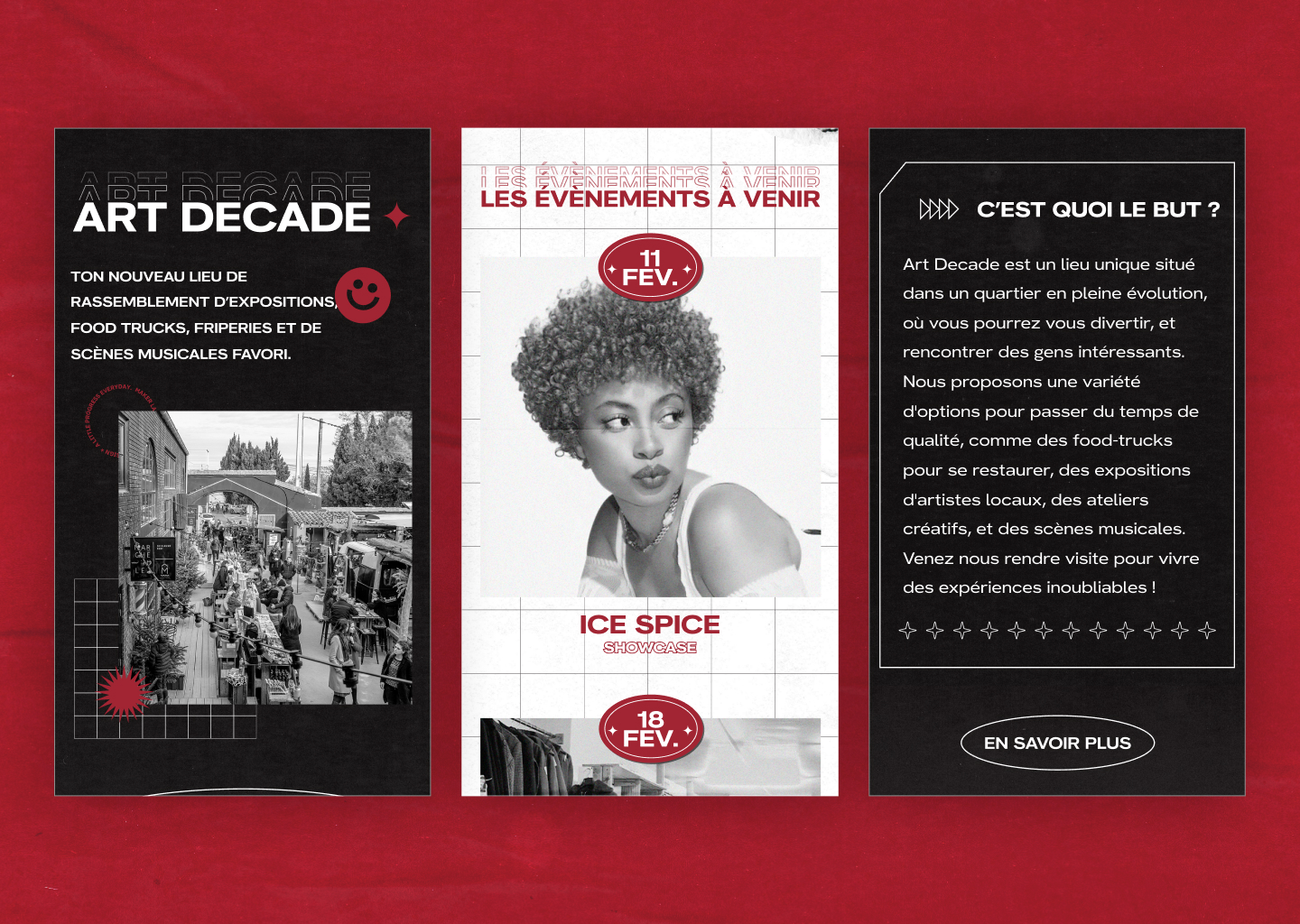 Art Decade, un lieu hybride pour l'afterwork, combine bars et "food trucks" dans une atmosphère unique, conçue pour attirer les jeunes actifs à la recherche d'une expérience culturelle partagée après le travail. Notre mission était de faire connaître ce lieu, son concept innovant, et d'annoncer les événements à venir.