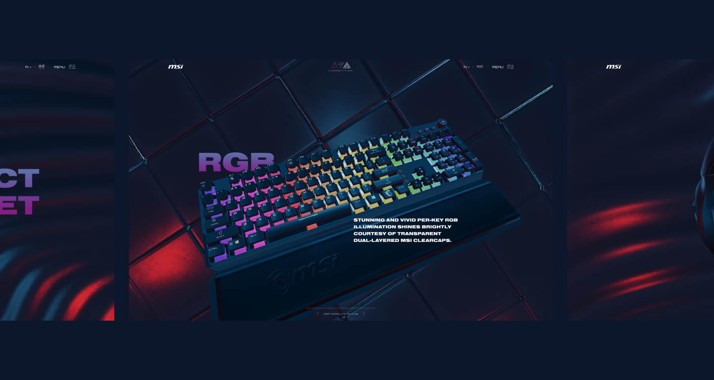 Nous avons collaboré étroitement avec MSI, le leader en équipement de gaming, pour créer une expérience 3D en temps réel avec WebGL. Cette expérience met en scène trois produits MSI associés à trois jeux différents, présentant ainsi de manière dynamique les capacités de chaque accessoire.